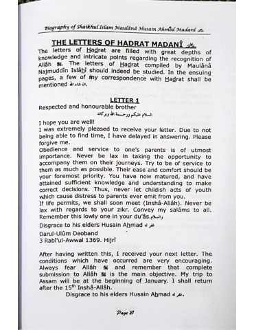 The author beautifully portrays the lifestyle, habits, piety, adherence to the sunnah, sacrifices and remarkable knowledge of his Shaykh, Shaykh al-Islam Mawlana Husain Ahmad Madani, a great hadith scholar, spiritual guide and freedom fighter of the last century.