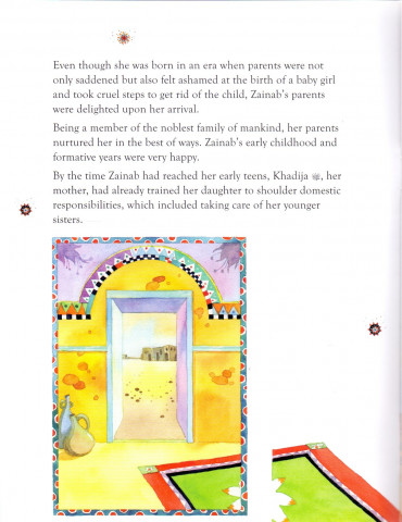 'Zainab' is the first book in the series about the daughters of the Prophet Muhammad. This beautifully written book explores the life and times of the eldest daughter of the Prophet. This beautifully written book explores the life and times of the eldest daughter of the Prophet. It relates fascinating stories about her parents, the Prophet and Khadija, marriage, motherhood and her contribution to the spread of the message of Islam. The vibrant illustrations that accompany the stories will make it an enjoyable read for children as well as adults, and help them learn about and appreciate the life of Zainab.