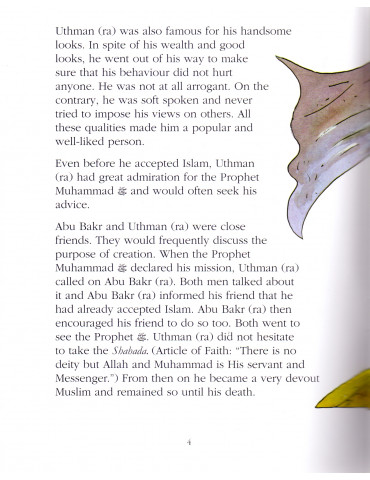 Uthman Ibn Affan (ra), the third Caliph of Islam ruled for twelve years, the longest among the rightly guided Caliphs. During his rule people became economically more prosperous and he further undertook such activities and projects which also improved their overall quality of life. He was a peace loving, liberal and kind hearted ruler. Uthman Ibn Affan (ra), had all the qualities of the good Muslim but his generosity and modesty stood out. He was the richest person among the Quraish but he spent most of his wealth in the well being of his people and in the cause of Islam. In particular he helped the orphans and the widows. In spite of being rich and powerful he was extremely humble and lived a simple life. Uthman Ibn Affan (ra), was very religious and a man of principles and whatever might be the circumstances he never compromised with his beliefs and principles. Thrice he received the glad tidings of Paradise from the Prophet Muhammad (pbuh).