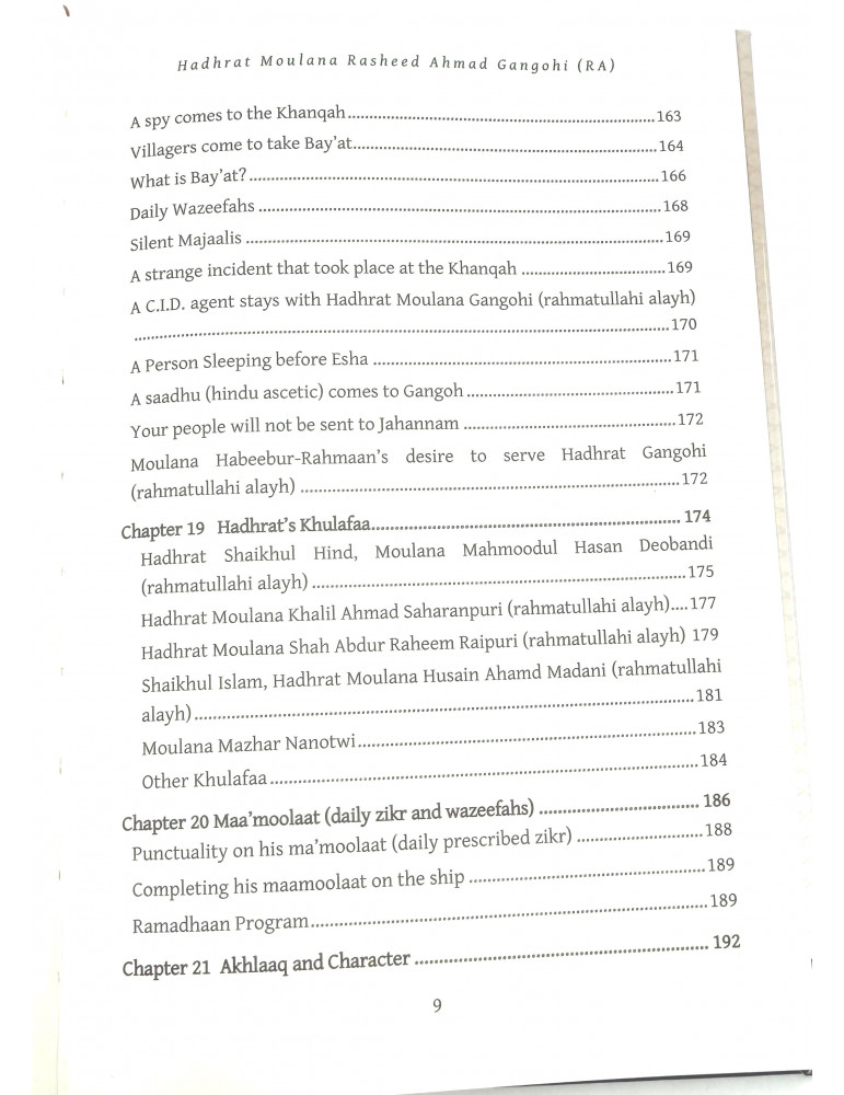 Today, whatever good work of Deen we see in India in the form of Madaaris, Khanqahs and the effort of Da'wat and Tableegh is a result of the fruits of the efforts of Hadhrat Moulana Rasheed Ahmad Gangohi (rahmatullahi alayh). Reading this biography shows us how this great personality lived his life in the obedience of Allah Ta'ala and in emulation of the mubaarak Sunnah of Rasulullah (sallallahu alayhi wasallam).
