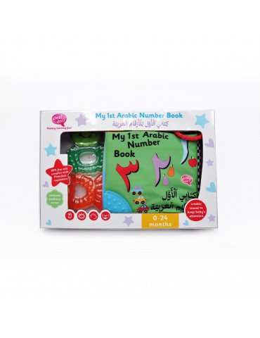 Soft cloth book for children 0-24 months introduces Arabic number forms to babies and toddlers.