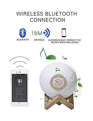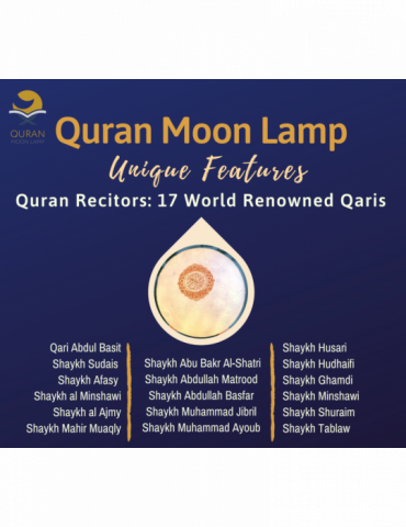 Our original Quran Moon Lamp is a special bluetooth speaker featuring full Quran audio from 17 world-renowned reciters and translation in 15 unique languages. It also features Duas, Hadith, Nasheeds and is the perfect gift for any child or adult to relax expecially with the choice of 7 colour ambient mood lighting.
