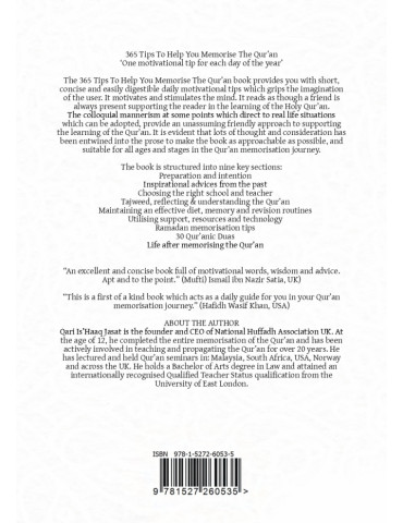 The aim of this book is to support and motivate anyone who wishes to either memorise or retain their memory of the Qur’an.