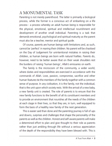 Cherishing Childhood is a parent-to-parent handbook that outlines how to tackle the challenges (and reap the rewards) of parenting children from birth to pre-adolescence within an Islamic ethos in a pluralist society.
