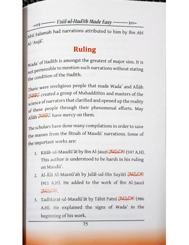 Usul-ul-Hadith Made Easy is a work that simplifies the field of the principles of Hadith. It will serve as an aid to the student before studying the higher works on the subject. This work is taught in many institutions in the original Urdu and will now help the English medium institutions.