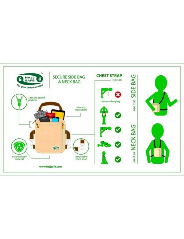 This Secure Hajj and Umrah Side Bag & Neck Bag has been designed especially for women and men who are travelling for Hajj or Umrah. This secure Side bag and Neck bag has 3 zipped pockets for you to carry all of your most important items safely while you perform one of the most life changing experiences of Hajj or Umrah.