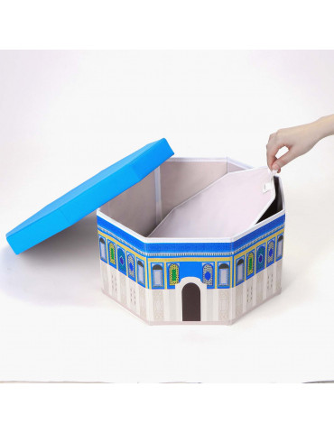 The Dome Of The Rock prayer mat storage box to remind us of the lost forgotten haram is now here. A perfect product to store all your Salah related items. You can also remind yourself of masjid al aqsa & Palestine with this beautifully designed product. A perfect product to educate yourself & your family members about the importance of masjid al aqsa & the night of mi'raaj. Made from high quality fibre wood & printed fabric.