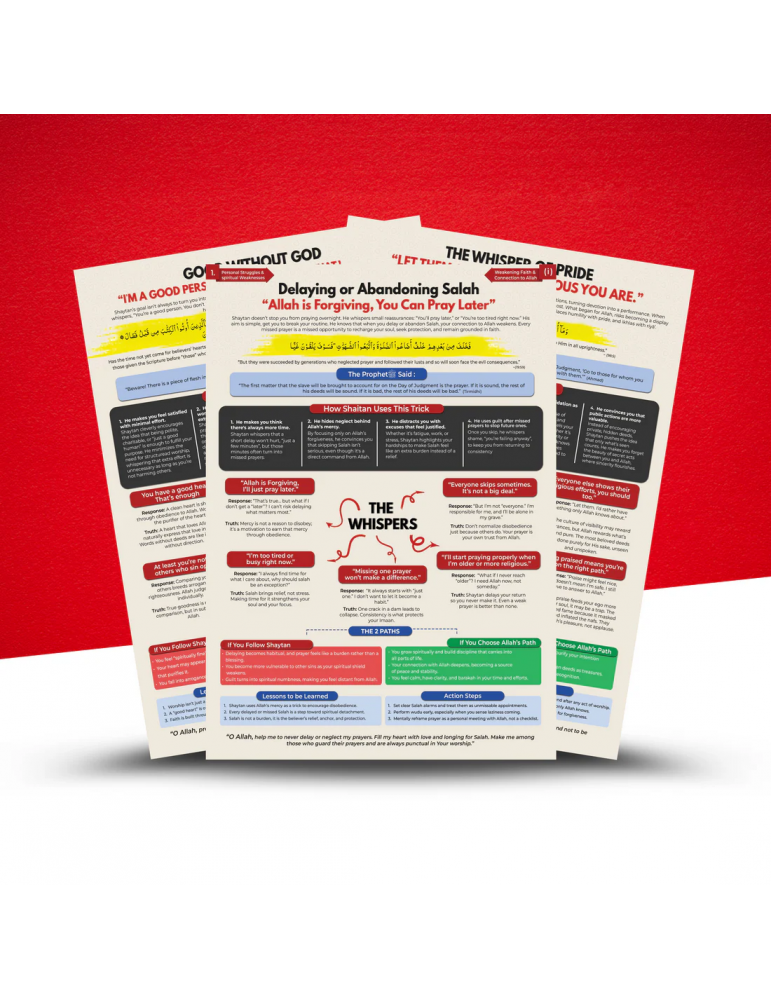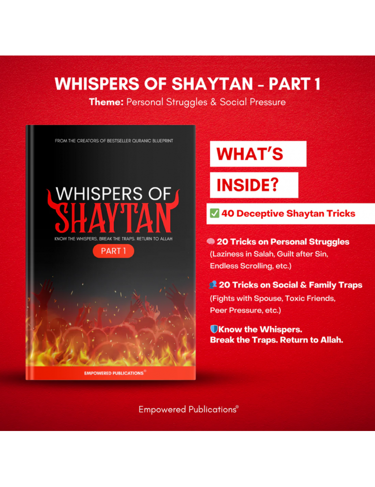 Whispers of Shaytan is your spiritual defense manual—exposing the exact tricks Shaytan uses to pull you away from Allah. This powerful, two-part book outlines 80 of Shaytan’s most deceptive tactics, each broken down with clear Quranic and Hadith evidence, practical guidance, and powerful duas for protection.