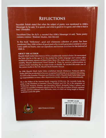 Discover Reflections, an inspiring collection of thought-provoking and heartwarming poetry compiled by Saara Bint-Muhammad. This book, authored by the esteemed Shaykh Mufti Saiful Islām, offers readers a profound journey into spirituality, wisdom, and devotion. Rooted in timeless Islamic teachings, each poem serves as a reminder to uplift our hearts, nurture our faith, and deepen our connection with Allah.