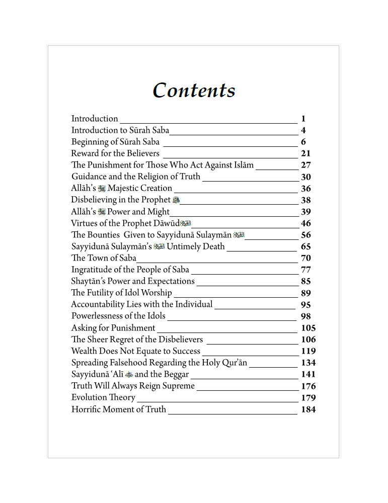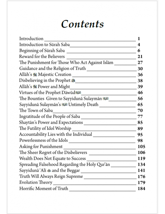 In front of you is a commentary of Sūrah Saba compiled by Shaykh Muftī Saiful Islām Sāhib دَامَتْ بَرَكَاتُهٗ . This sūrah is especially relevant to our times. In our current times, Islām is subject to taunts and mockery and the message of tawhīd and the Hereafter is challenged. This sūrah was revealed at a time when the disbelievers of Makkāh were also challenging the message of Islām. It invites to belief by reminding people of what is to come in the Hereafter for the believers and disbelievers. It emphasises the message that success will only be achieved through believing in Allāh subhanahu wa ta’ala and following Islām.