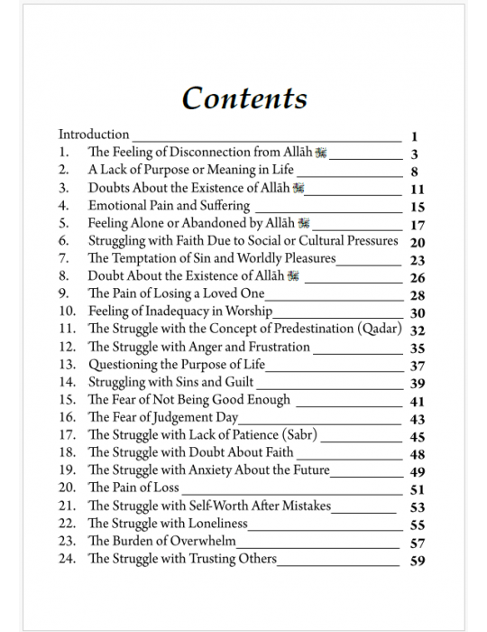 The aim of this book is not to provide simple, one-size-fits-all answers but to guide you through a process of self-reflection, self-compassion and self-improvement. These 101 struggles are not isolated – they represent a universal experience shared by many Muslims at various points in their lives. No matter how lost you may feel, no matter how distant you may seem from your faith, know that you are not alone. The path to rediscovering peace and purpose in your relationship with Allāh is a personal journey, but it is filled with hope, mercy and guidance.