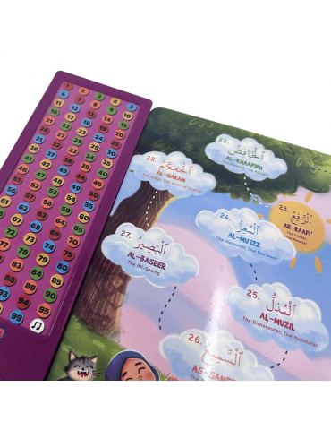 Embark on a spiritual journey with this beautiful sound book, designed to enrich your understanding of the divine attributes of Allah. Each name is beautifully articulated in Arabic and in English. Perfect for children and adults alike, this book invites listeners to explore the profound meanings behind each name, fostering a deeper connection to faith and spirituality. With interactive elements and captivating soundscapes, this is not just a book—it's a heartfelt exploration of the beauty and wisdom of Islamic teachings. Join us in this enlightening adventure and discover the power of these sacred names in your daily life.