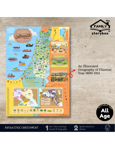 The Illustrated Geography of Palestine is carefully curated from authentic sources to include the distinct character of Filastine in the Greater Syria province of the Ottoman Empire.