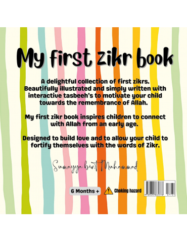 A delightful collection of the first Zikrs. Beautifully illustrated and simply written with an attached interactive tasbeeh to motivate your child towards the remembrance of Allah.