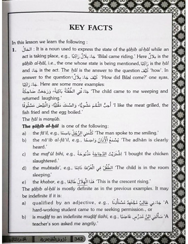 Combines Modern Arabic vocabulary with Islamic terminology as used in the Qur'an and hadith. Assists in learning Arabic grammar and essential language skills Uses a conversational approach to help understand grammatical usages in its perfect form. Contains Multi-skill exercises to improve vocabulary and language