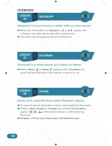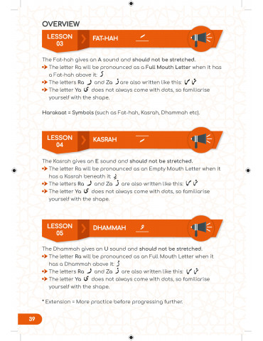 Each section in our Qa'idah begins with a simple to read explanation of the lesson, so the parents can assist in their child's learning and brush up on theirs too.