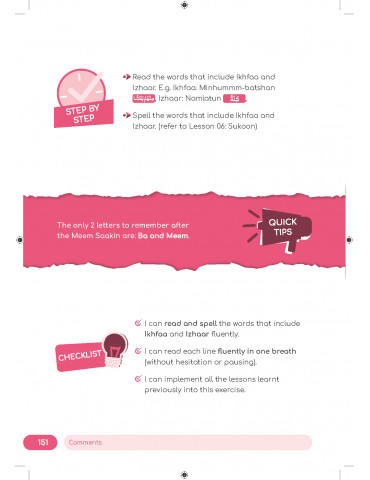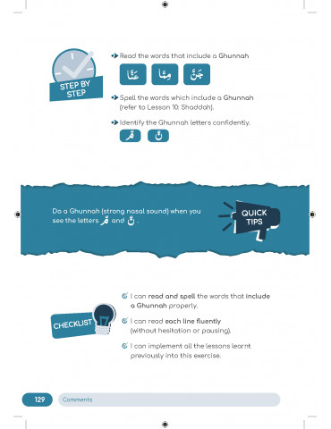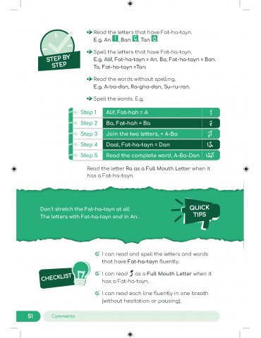A unique feature of this Qa'idah is the "Tips and Tricks" section. This harnesses the advice from years of teaching experience, and makes it accessible to parents, in the comfort on their homes.