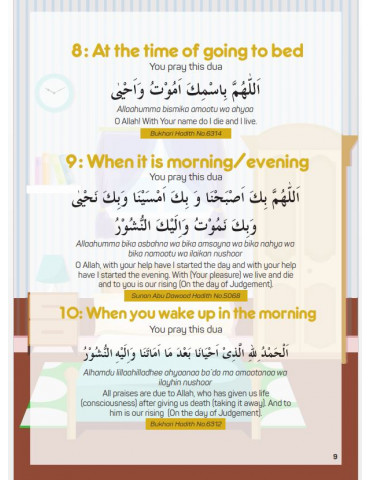 This has been presented in an easy to learn format with the Arabic alongside with the English Transliteration & Translation and references authenticated by the well-known books of Ahadeeth. (Please see pictures for more details)