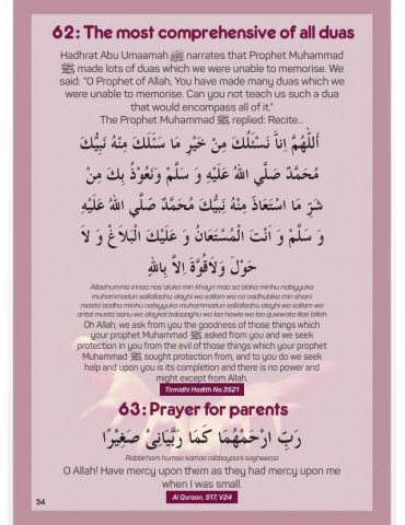 Prayers of the Prophet Muhammad, is a beautifully illustrated book for Madrasah children, covering a wide range of 73 authentic duas', Salah Chart, Ayatul Kursi, 99 names of Allah.
