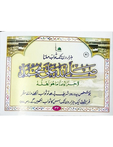 A beautifully displayed book which contains 40 Durood & Salam (Salutations) on the Holy Prophet sallallahu 'alayhi wasallam. Pictures of The Prophet's sallallahu 'alayhi wasallam Mosque as well as other landmarks in Madinah are included.