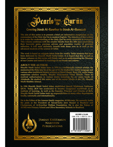 The aim of this series of compilation is to present a brief but informative commentary of the Holy Qur'an, presenting snippets from the weekly Tafsir sessions delivered by Shaykh Mufti Saiful Islam Sahab. The purpose is to make it easily accessible for the general public in understanding the meaning of the Holy Qur'an. This series begins with the small Surahs from 30th Juzz initially, unravelling its heavenly gems, precious advises and anecdotes worthy of personal reflection. It will most definitely benefit both those new to as well as advanced students of the science of Tafsir.