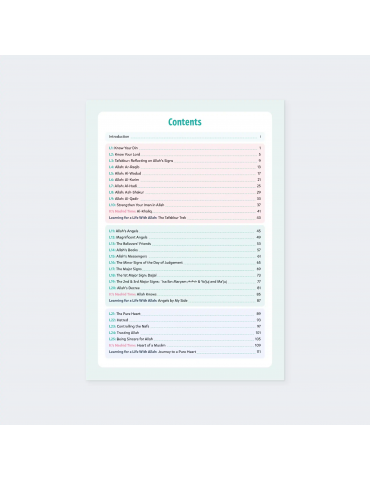 - 25 practical and engaging lessons that explore the 6 pillars of iman, Allah’s Names, and the foundations of tazkiyah.