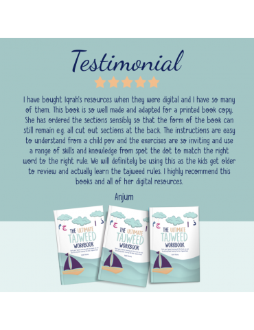 “If anyone can’t decide if they need this or not, let me tell you that we looovvvvvveeee the workbooks!! My daughter has learnt tajweed through these and I don’t even have to ask her to do it. She herself reminds me every single time!! I have the printable version and we do it on the laptop instead of printing!”