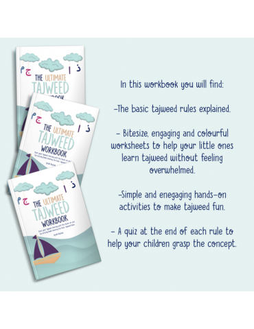 We all have to learn to recite the Quran correctly with tajweed, so why not make it fun with simple and engaging hands-on activities? In this workbook you will find the tajweed rules explained visually with a clear and easy explanation, which is then followed by a hands-on activity and a quiz to help your children grasp the concept. The bite size, engaging and colourful worksheets help your little ones to learn without feeling overwhelmed. The workbook allows your children to work independently helping them become more confident.