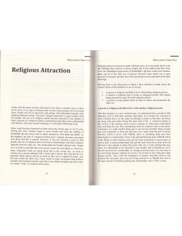 An engaging book covering the pressing issue of illicit relationships, that are growing popular amongst Muslim youth. The author successfully explores the deadly cocktail of sins that are prevalant in colleges and universities. He provides useful, practical solutions, enabling them firstly, to recognise what is harmful to them as students and more so as Muslims, and secondly, to courageously say 'no' to partaking from the cocktail's poisoned chalice.